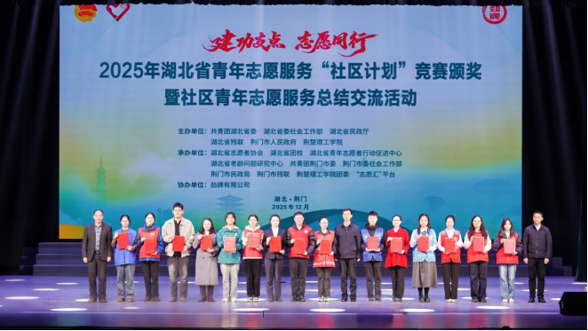 本網訊(通訊員 肖志昕)12月7日,2025年湖北省青年志愿服務“社區計劃”競賽頒獎暨社區青年志愿服務展示交流活動在荊楚理工學院舉行。團省委書記劉治田出席活動,荊門市、荊楚理工學院、省委社會工作部、省民政廳、省殘聯有關負責同志參加活動。本次大賽全省各市州共18個社區、61個社會組織(含高校)進入決賽。武漢工程大學“紅細胞”志愿服務隊入圍“美麗小天使”專項賽決賽,最終榮獲銀獎。 獲獎團隊師生合影答辯展示環節,“紅細胞”...